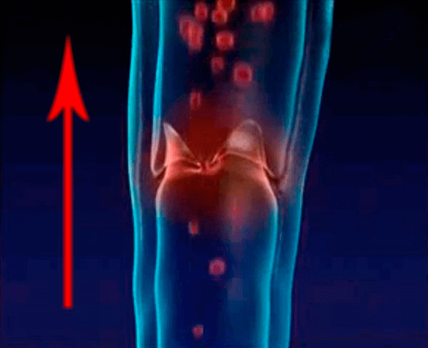 Přesně tak. To je hlavní faktor. Děje se to docela úžasným způsobem. Krev s sebou nese "zbytky" naší kůže a svalů, prochází z povrchových žil do takzvaných komunikačních žil (konektory). Jsou takto pojmenovány, protože spojují povrchové žíly a hluboké žíly. V těchto komunikačních žilách jsou chlopně, které propouštějí krev z povrchových žil a neumožňují jí se vrátit. Podíváte-li se na obrazovku, můžete vidět, jak tyto chlopně pracují.